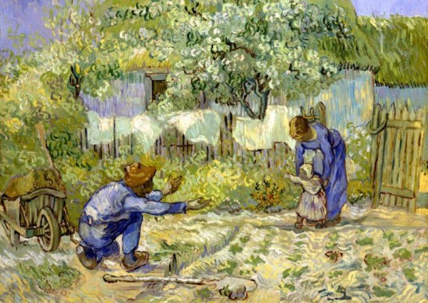 Vincent Van Gogh Csillagos éjszaka című festménye legalább olyan ismert, mint a Csendélet című festménye. Nemsokára megjelenik az első teljes egészében kézzel festett film is, amely az festményeivel készült el (erről itt olvashatsz: https://mystique.cafeblog.hu/2017/01/26/az-elso-teljes-egeszeben-kezzel-festett-animacios-film/ ) Van Gogh 1889-1890 Saint Remy-ben talált menedéket, ahol 22 festményt másolt le egy francia festőtől, Millet-től, akit nagyra becsült. Ennek egyik megmutatkozása, az Első lépések, Millet után 1890-ből, amelyen az első lépéseit teszi meg a gyermek (Van Gogh), apja felé (Millet).